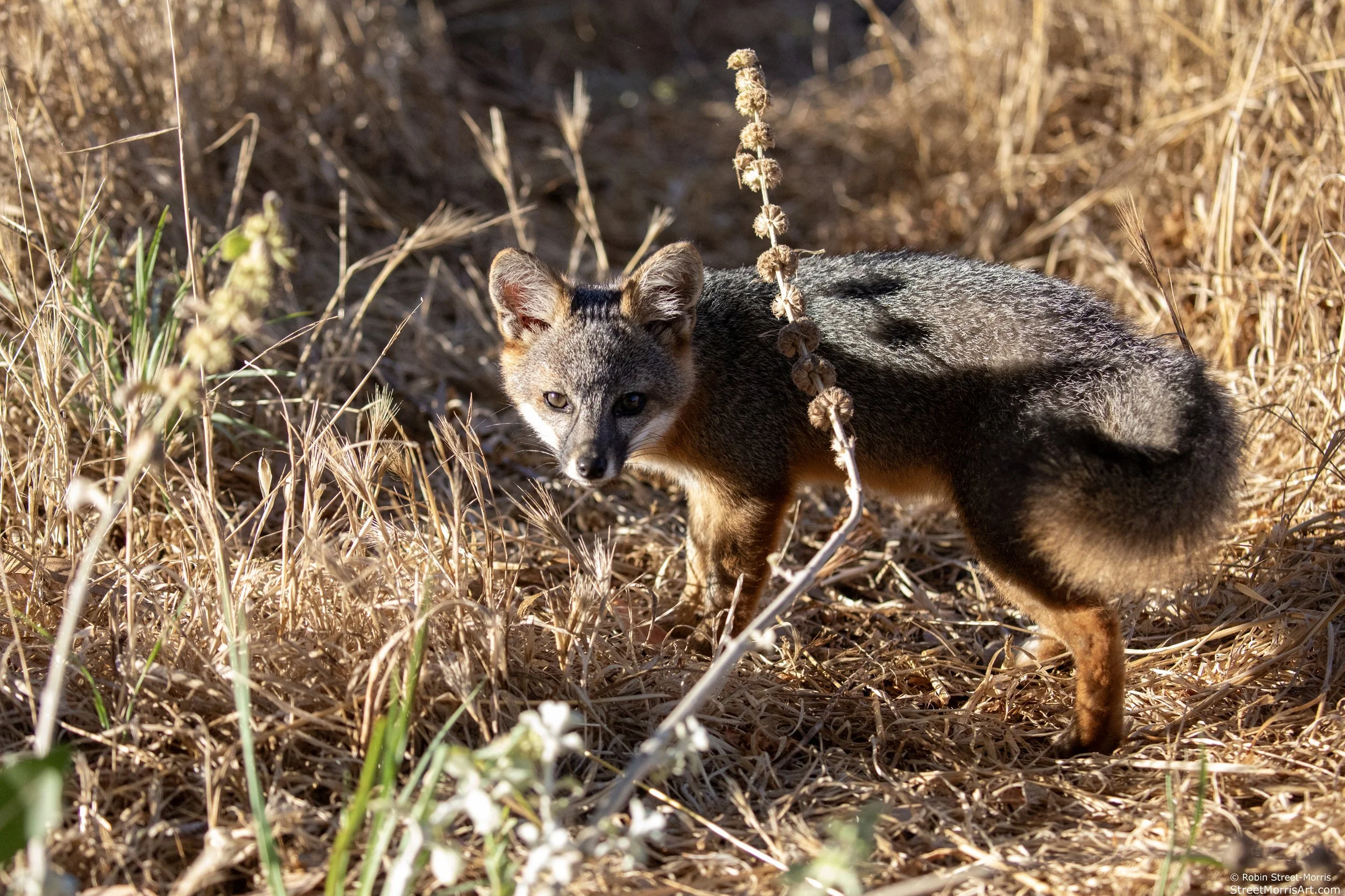 I've been going to Catalina and the Northern Channel Islands for quite a few years with one of the main purposes being observing the various subspecies of island foxes (Urocyon littoralis) that are endemic to each of the islands where they are the apex predators. According to the National Parks Service, "Island fox diets vary based upon food item diversity of the individual islands. On Santa Rosa Island, where food item diversity is high, deer mice, Jerusalem crickets, beetles, and earwigs are the preferred food. On other Channel Islands, diets include plant items such as fruits from cactus, manzanita, saltbushes and sea figs, as well as insects and deer mice when they are present. Occasionally, foxes forage along the shoreline for crabs and other marine invertebrates."